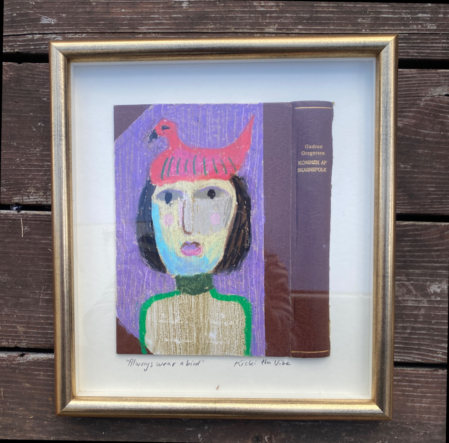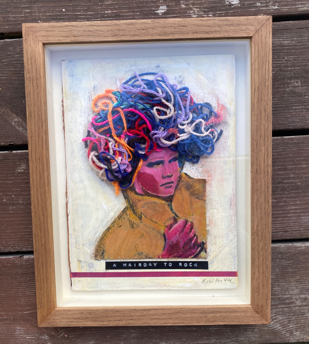 A hair day to rock, mixed media på bogforside 25 x 31 cm